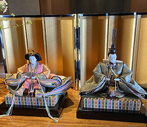 関東では一般的にお内裏様は向かって左、お雛様は向かって右に飾りますが、京都などでは古式にならって反対になります。(写真は京都古式スタイル)
